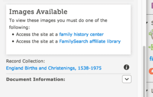 There is also the option to click the down arrow to find document information such as the film number, how to cite the record and more This information may help you locate the images when at an Affiliate Library. Making it easier to find sources at a later date is a good reason to have a personal login to FamilySearch.