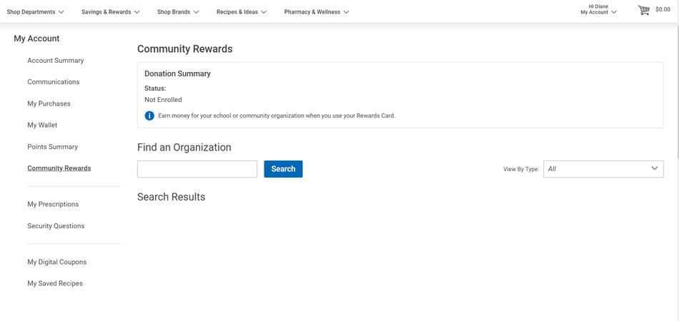 2. SCROLL DOWN and find the COMMUNITY REWARDS section – Click the ENROLL button